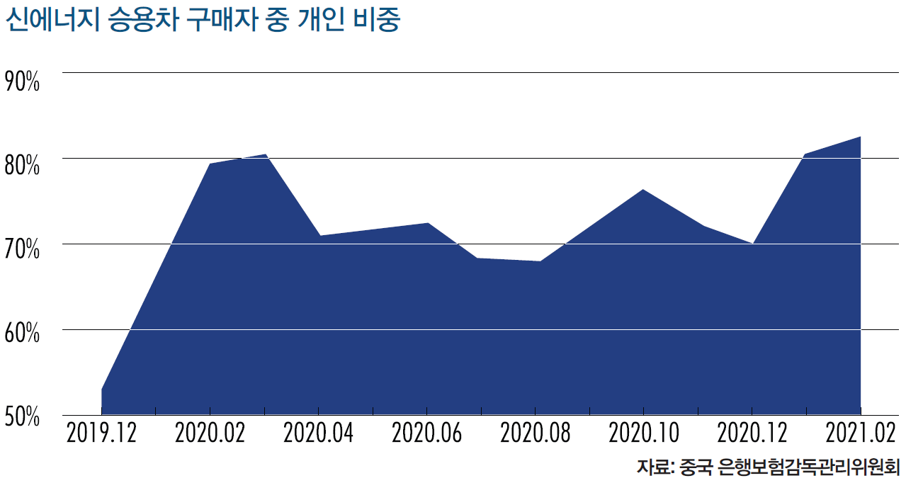 2021년 상반기, 개인의 신에너지 자동차 구매량은 76만 2,300대로 전년동기대비 251% 증가했다. 이는 전체 자동차 구매에서 70%가 넘는 비중이다. 신에너지 자동차의 개인보험 가입률 역시 2019년의 50%에서 2021년 상반기 70%까지 증가했다. 여러 정황을 살펴볼 때 중국의 신에너지 자동차 구매 형태는 정부가 주도하던 구매에서 개인이 주도하는 형태로 바뀌고 있음을 알 수 있다. 이제 제품 경쟁력이 자동차기업의 미래를 결정할 것이다.