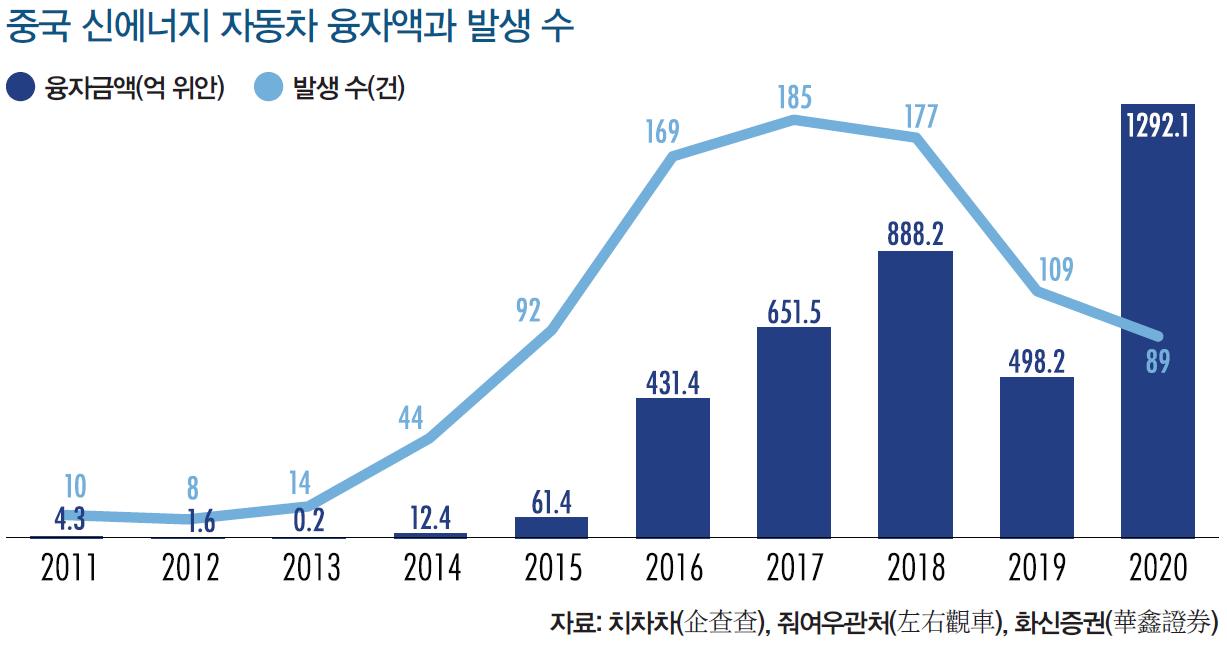 2021년 탄소 중립 목표가 명시되면서, 신에너지 자동차 보급률은 2020년 초 5.4%에서 2021년 상반기 9.36%로 상승했다. 중국은 2025년까지 보급률을 25%까지 확대한다는 목표를 제시했고, 노르웨이는 100%를 목표로 한다. 이러한 급진적인 목표 제시와 함께 자동차 시장은 변화를 맞이할 것으로 보인다. 이에 따라 각 이해당사자의 발걸음이 빨라지고 있다. 중국 기업정보 플랫폼 톈옌차의 데이터에 따르면, 2020년 중국 내에서 신에너지 자동차, 전기자동차, 플러그인 하이브리드차, 수소연료차를 경영 범위에 포함하는 기업은 20만 곳을 넘어섰다(공상은행 등록 기준). 2020년에만 전년 대비 85% 신규 증가한 6만 8천 곳을 기록했다. 신에너지 자동차 기업의 융자액도 꾸준히 늘고 있다. 자동차 제조사의 증가, 경쟁 가속화로 수익은 줄고, 적자 기업 수는 증가 중이다.