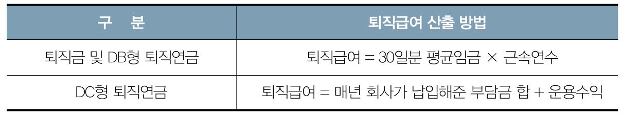 <표1> 제도 유형별 퇴직급여 산출 방법