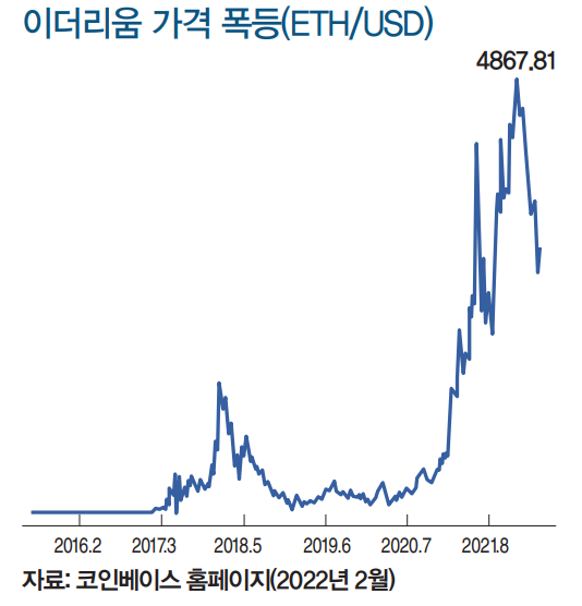 코인베이스 공개 데이터에 따르면, 2021년 1월 980달러였던 이더리움 가격은 2021년 11월 4867.8달러에 달해 상승 폭이 4배에 달했다. 특히 2021년 3분기의 가격 상승폭은 150%를 넘어섰다. 이 시기는 공교롭게도 NFT 산업 규모가 급속히 성장한 시기이기도 하다.