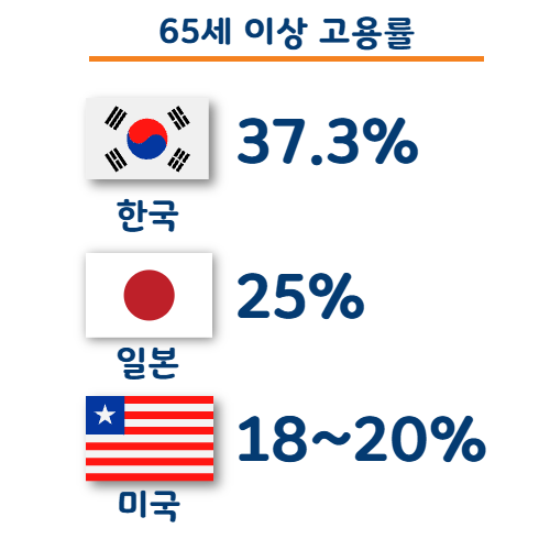 반면 미국과 영국은 정년 자체를 폐지했다. 미국은 1986년 연방법을 개정해 고용상 연령 차별을 금지하며 정년제를 전면 폐지했다. 영국도 2011년 정년퇴임 연령을 없앴다. 우리나라와 같은 정규직 고용 개념이 없기 때문에 노인 고용에도 부담이 적다. 일할 수 있는 사람이라면 계속 일거리를 찾을 수 있다. 그러니 대형마트 계산원, 패스트푸드점 캐셔, 아마존 배달원처럼 생활형 세컨드잡에 종사하는 노년층도 적지 않다.