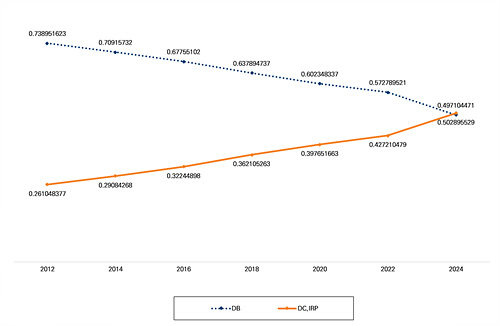 이 보고서는 DB형의 비중이 2012년 73.9%에서 2024년 49.7%로 축소되어 처음으로 과반을 밑돈 반면, DC형은 확대되고 있음을 핵심 변화로 제시하였습니다. 이는 우리나라 퇴직연금의 중심축이 사용자 운용 중심의 DB형에서 가입자 운용 중심의 DC형·IRP로 이동하는 대전환이 본격화되고 있음을 의미합니다.