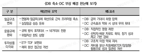 변화의 주된 원인으로는 ①임금체계 변화에 따른 DB형의 상대적 약화와 ② 운용환경 개선에 따른 DC형의 선택지 확대가 제시되었습니다.