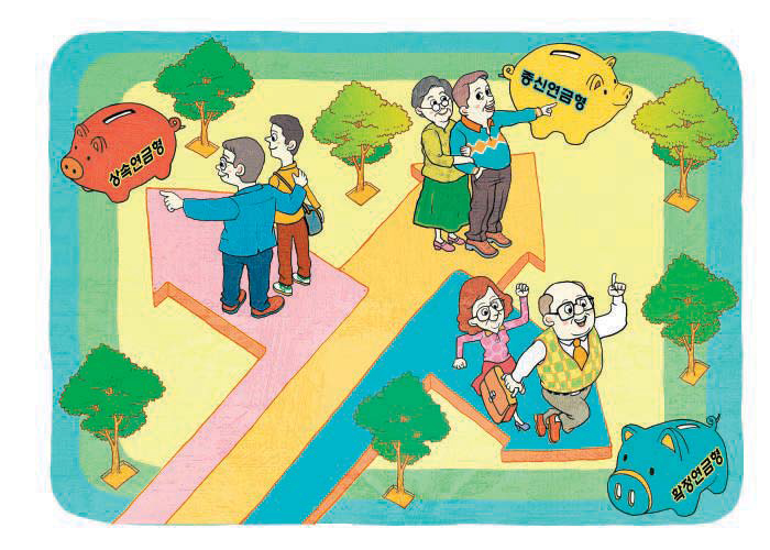 연금보험에 가입해 연금을 수령하는 방법은 크게 3가지로 나뉜다. 10년, 20년 등 일정 기간에 연금을 수령하는 확정 연금형, 생존해 있는 동안 종신토록 연금을 수령하는 종신 연금형, 생존기간에 적립금의 이자만 받다가 사망 시 적립금은 상속인에게 남기는 상속연금형이다. 이 3가지 방법 가운데 하나를 선택해 연금을 수령하면 되는데, 최근에는 확정 연금형과 종신 연금형의 두 가지 급부를 병행 선택할 수 있는 혼합연금형도 등장했다.